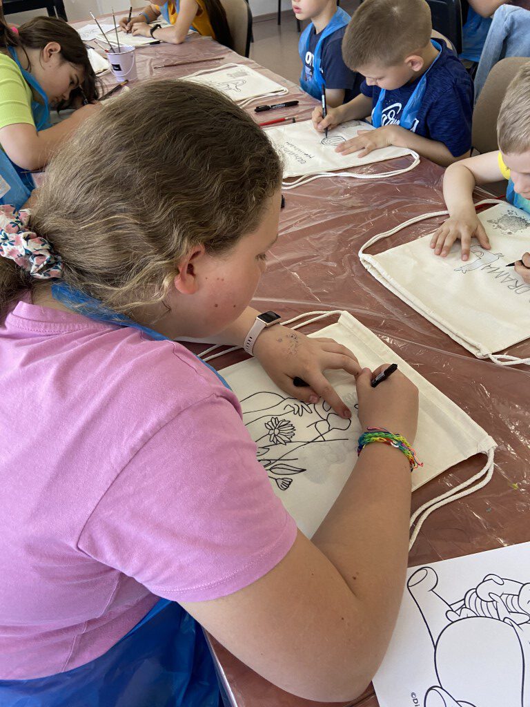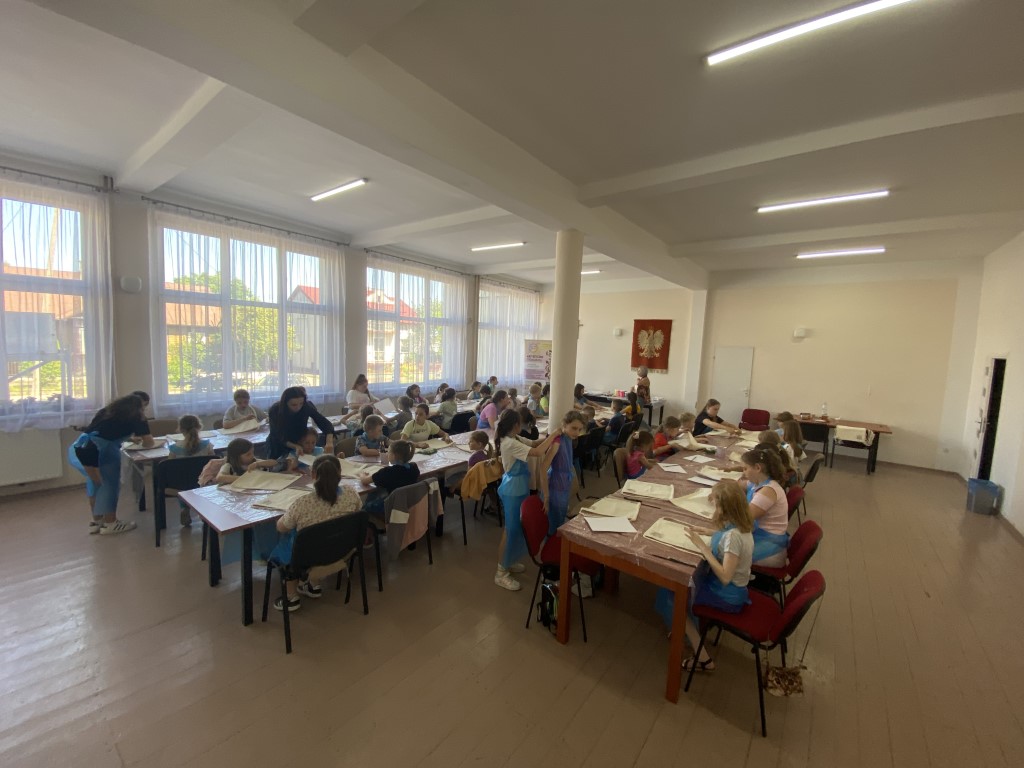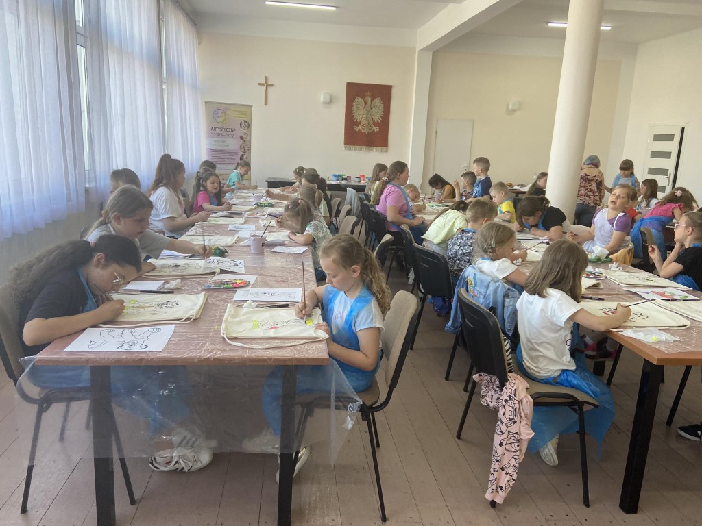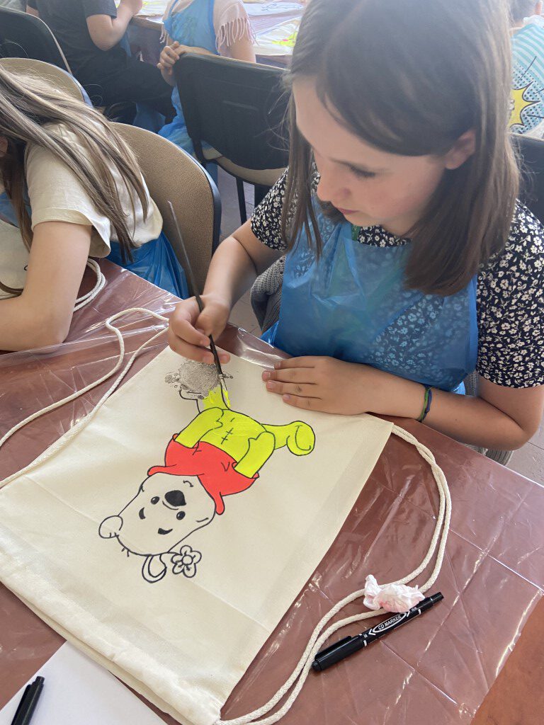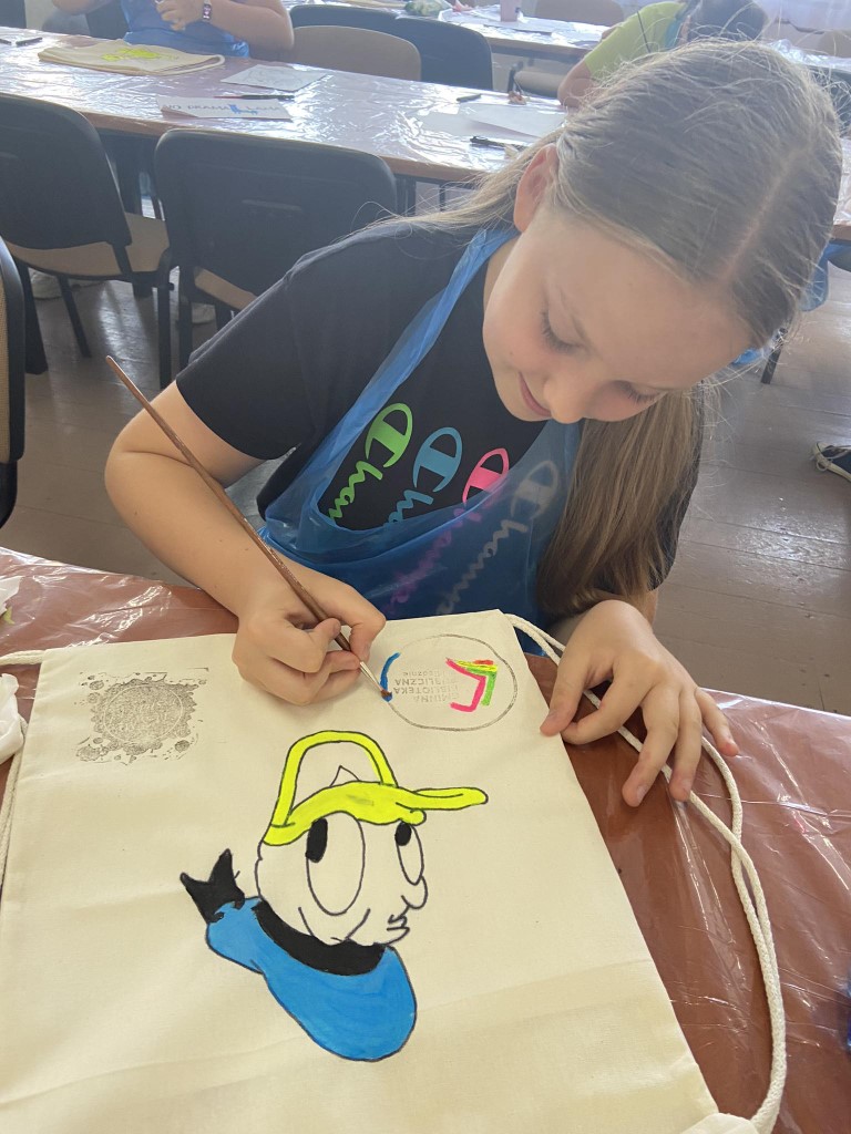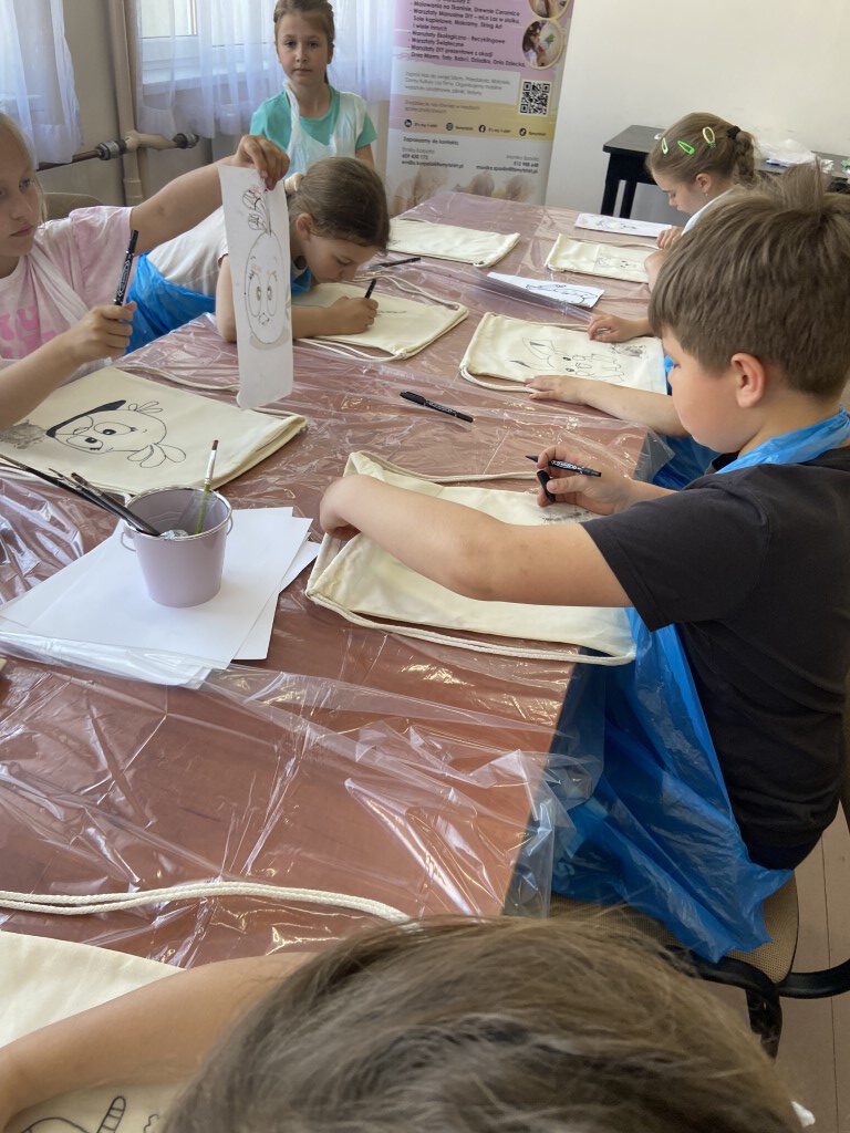 Z okazji Dnia Dziecka w naszej bibliotece odbyły się kreatywne warsztaty artystyczne, które poprowadziła Pani Emilka z firmy It’s my t-shirt. W trakcie zajęć mieliśmy okazję malować worko- plecaki, które staną się praktycznymi torebkami/plecakami do przechowywania naszych ulubionych książek oraz innych cennych przedmiotów. Na workach zaistniały zarówno bajkowe postacie, jak i inne fascynujące motywy, tworząc niepowtarzalne dzieła sztuki.