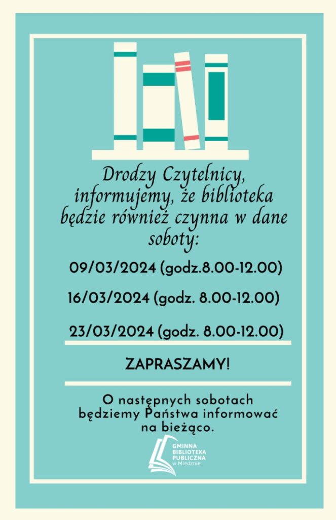 Czekamy na czytelników od poniedziałku do piątku w godzinach 9.00 – 17.00