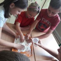 Wakacje dobiegły końca, a wraz z nimi zajęcia zorganizowane przez Świetlice Socjoterapeutyczną oraz Gminna Bibliotekę Publiczną w Miedznie. Spotkania odbywały się w każdy wtorek i środę. Dzieci mogły aktywnie i twórczo spędzić swój wolny czas. Różnorodność zabaw oraz form spędzania wspólnego czasu sprawiła, że każdy mógł znaleźć coś dla siebie . Dzieci miały okazję uczestniczyć w zabawie z masą solną, z której tworzyły piękne dzbanki, kwiatki, zwierzęta i nie tylko. Dużo radości sprawiło im również tworzenie ”slime”. Celem tegorocznych zajęć było poszerzanie wiedzy dzieci na temat naszej Gminy i Parafii. Podsumowując ich wiedzę na ten temat, dzieci uczestniczyły w grze terenowej. Pytania oraz zadania towarzyszące podczas zabawy, wcale nie były takie proste. Dzieci miały za zadanie odpowiedzieć min. na takie pytania: „Kiedy Miedznie odebrano prawa miejskie?”; „Co cudownego znajduje się w Miedzeńskim Kościele?”. Następnym punktem wakacyjnych spotkań było poznanianie tajemnic teatru, dlatego też uczestnicy zajęć mieli okazje poznać teatrzyk papierowy – Kamishibai, ale również sami próbowali wcielić się w różne postacie i odegrać krótkie scenki z bajek. Ważnym elementem wakacji była wycieczka do Węgrowa, gdzie dzieci miały możliwość zwiedzić kościół św. Piotra z Alkantary i św. Antoniego z Padwy oraz Bazylikę Mniejszą. Głównym punktem wycieczki był spektakl „Czarnoksiężnik z krainy OZ”, który odbył się w Miejskiej Bibliotece Publicznej w Węgrowie.