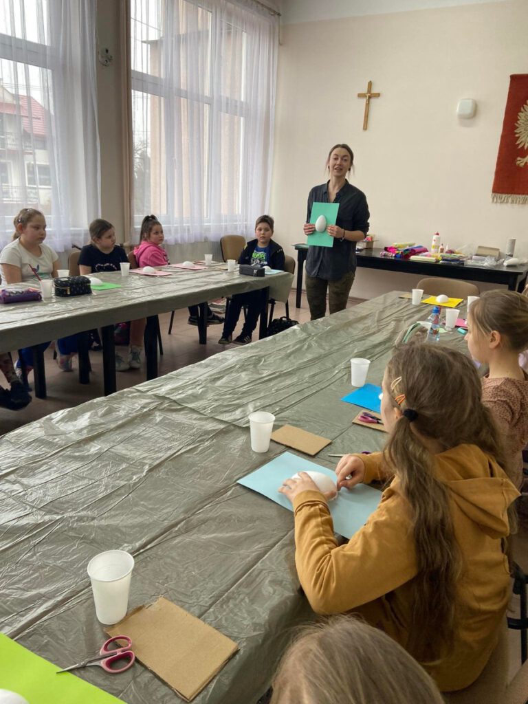 Wzorem zeszłorocznych zajęć i w tym roku w naszej bibliotece odbyły WIELKANOCNE WARSZTATY PLASTYCZNE. Tym razem dwie grupy uczestników miały okazję wykonać pisanki. Warsztaty poprowadziła p. Katarzyna Słowik, która na co dzień zajmuję się projektowaniem wnętrz. Uczestnicy nie tylko mieli okazję wykonać prace, w których głównym motywem była pisanka, ale również dowiedzieć się na czym polega praca projektanta oraz poznali podstawowe pojęcia plastyczne.