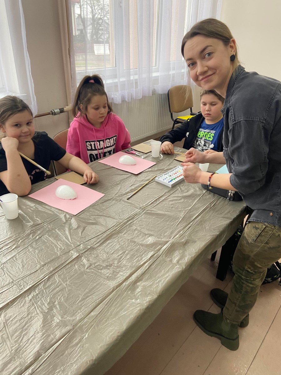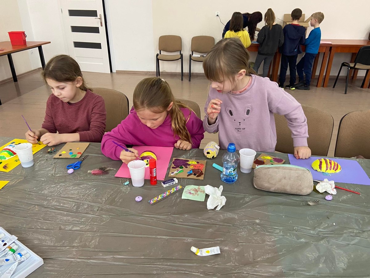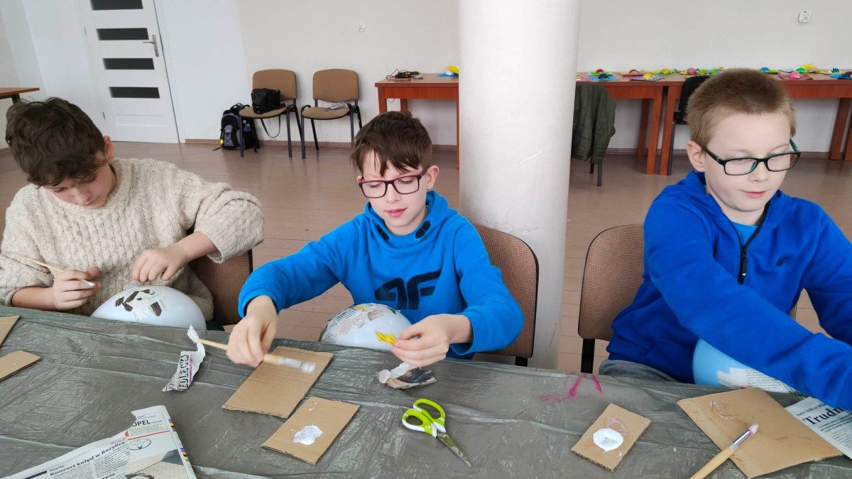 Wzorem zeszłorocznych zajęć i w tym roku w naszej bibliotece odbyły WIELKANOCNE WARSZTATY PLASTYCZNE. Tym razem dwie grupy uczestników miały okazję wykonać pisanki. Warsztaty poprowadziła p. Katarzyna Słowik, która na co dzień zajmuję się projektowaniem wnętrz. Uczestnicy nie tylko mieli okazję wykonać prace, w których głównym motywem była pisanka, ale również dowiedzieć się na czym polega praca projektanta oraz poznali podstawowe pojęcia plastyczne.