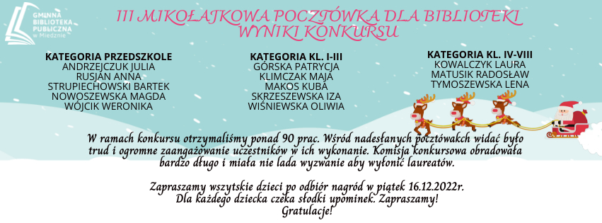 Wyniki konkursu : III Mikołajkowa Pocztówka dla Biblioteki